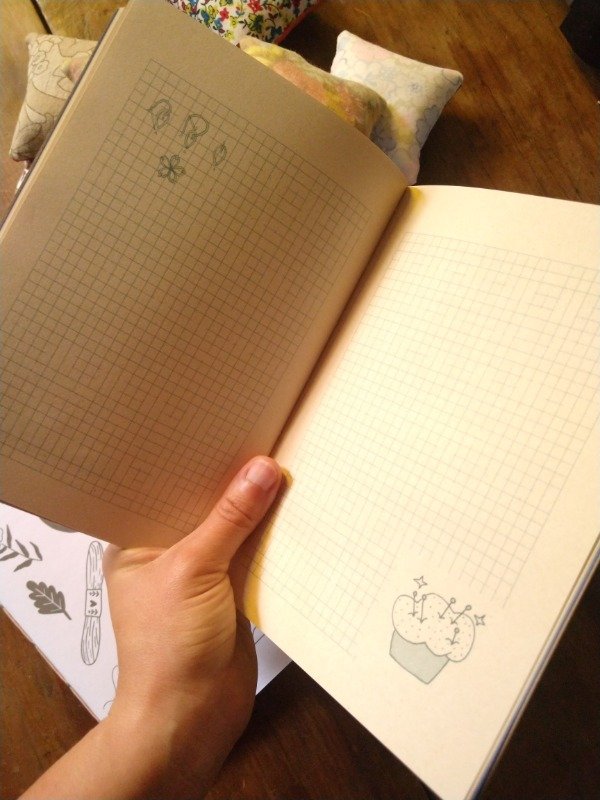 🌼Libreta tapa blanda, con guarda de color, 30 páginas cuadrículadas para trazar diseños de bordado, con ilustración @laila_eterna