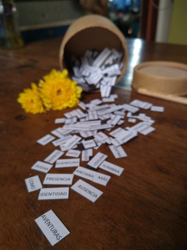 Todas las palabritas van en su embase de cartón, junto a un lápiz plantable.